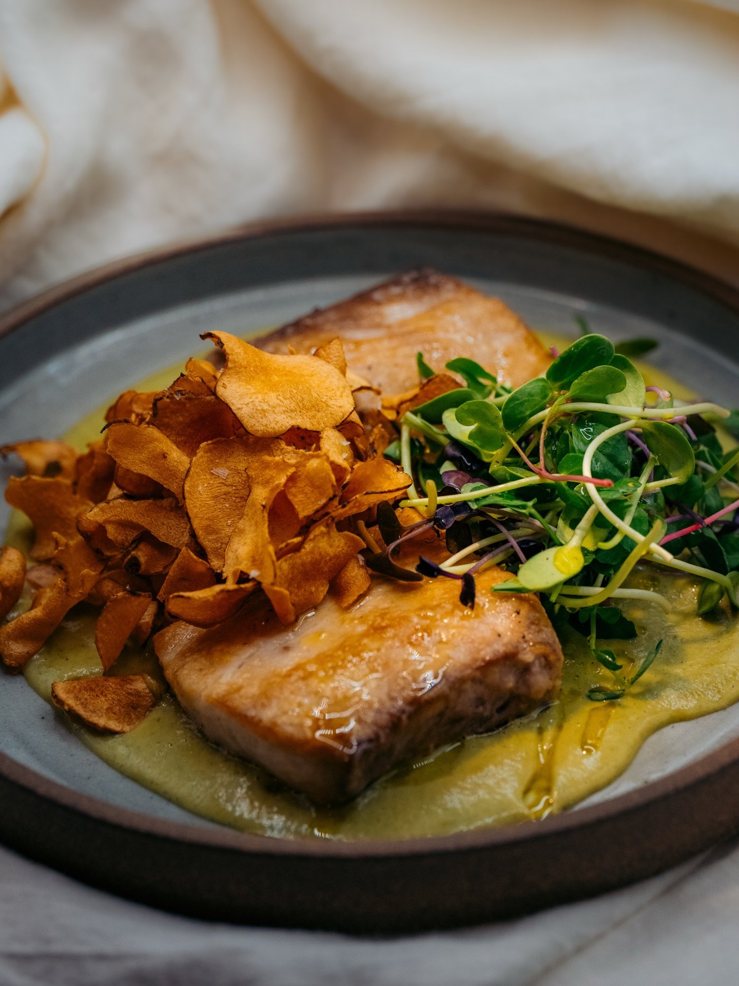View fullsize Opakapaka ~ Sun-choke Chips ~ Herb Salad
