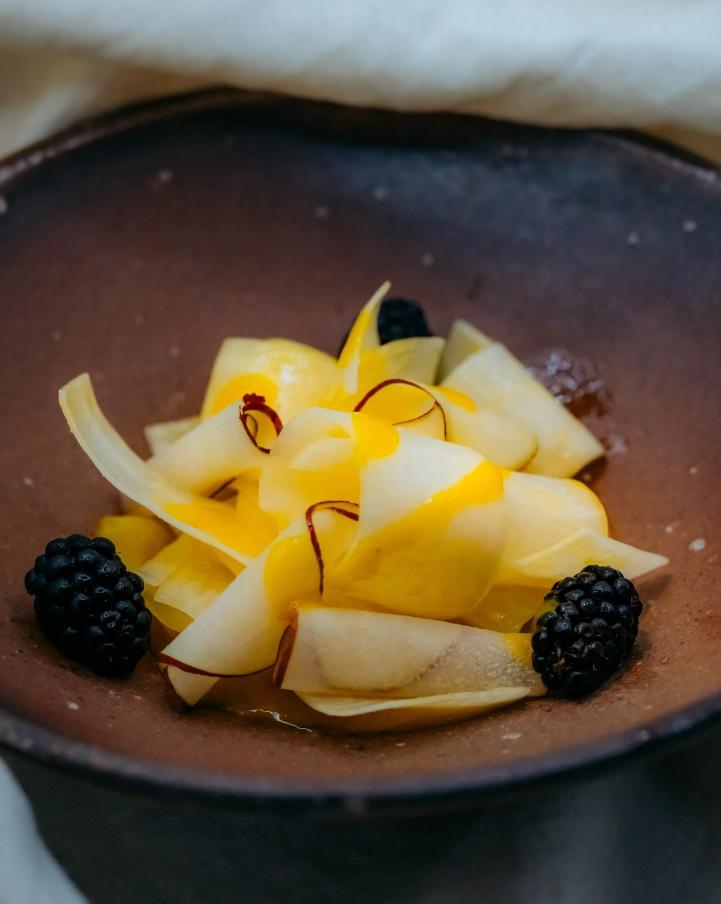 View fullsize Kohlrabi Crudo • Mango Vinegar • Pear • BlackBerry