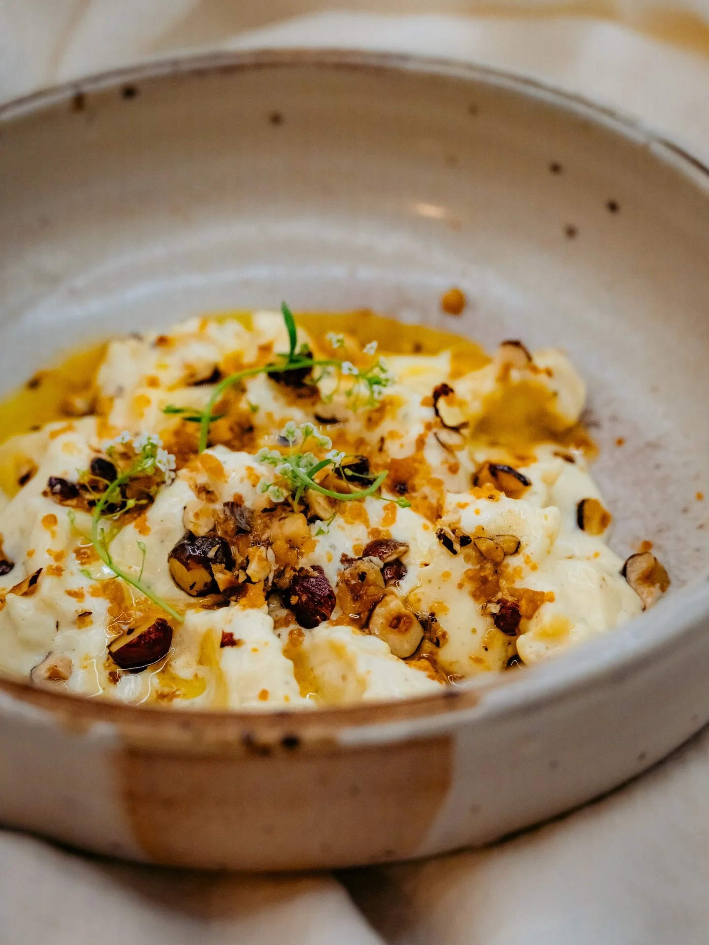 Brown Butter Hazelnut ~ Creme Fraiche ~ Toasted Sourdough Bread Crumb ~ Capezzana Olive Oil